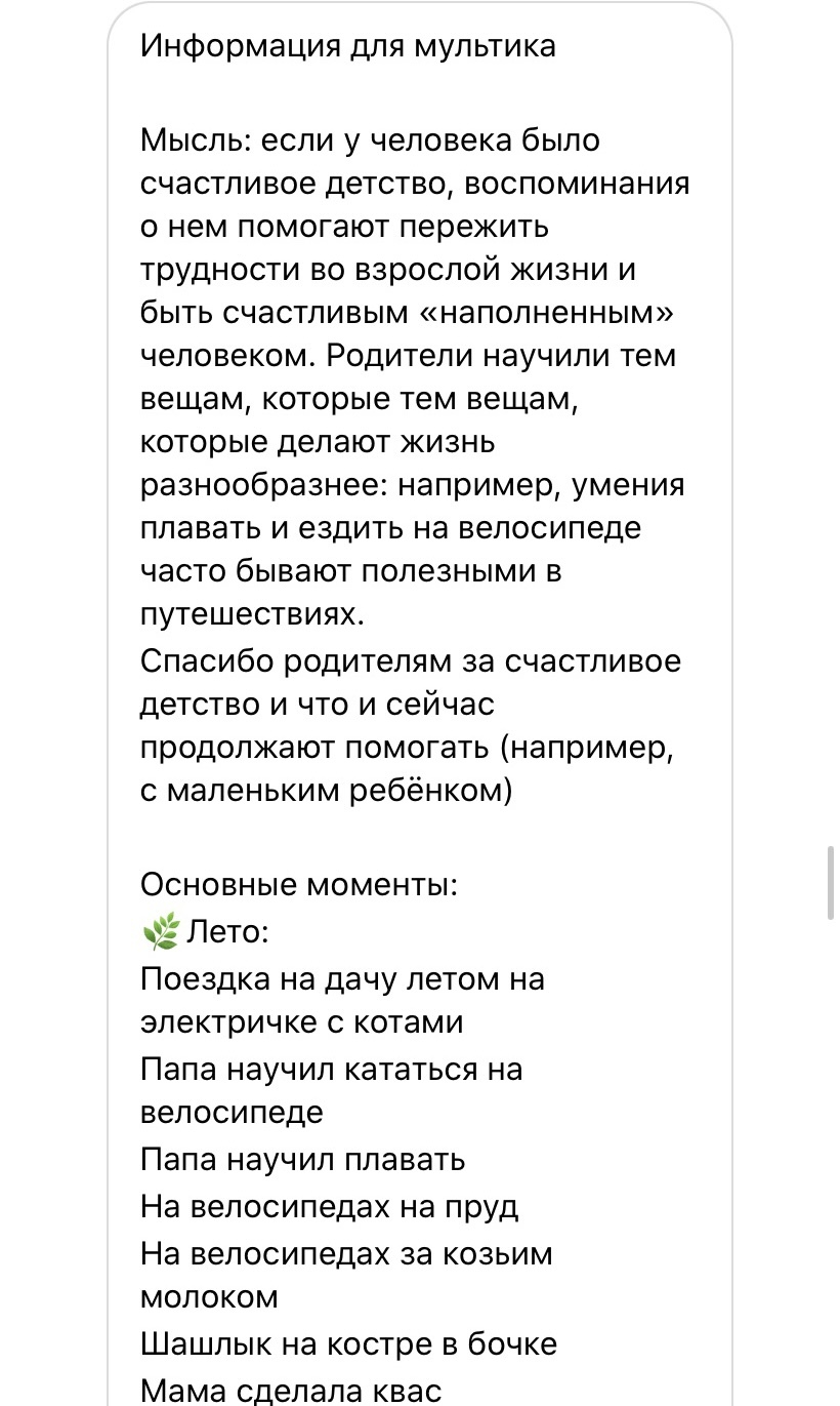 Все пожелания, мысли, идеи. Выделить то, что должно быть отражено обязательно.